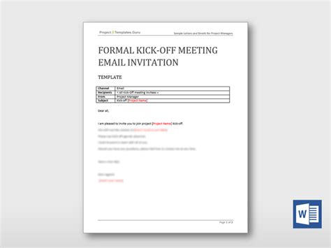 Kick Off Email Template. This is a quick informal email to send out to all your kick off meeting participants. Download this template and 80+ others free.