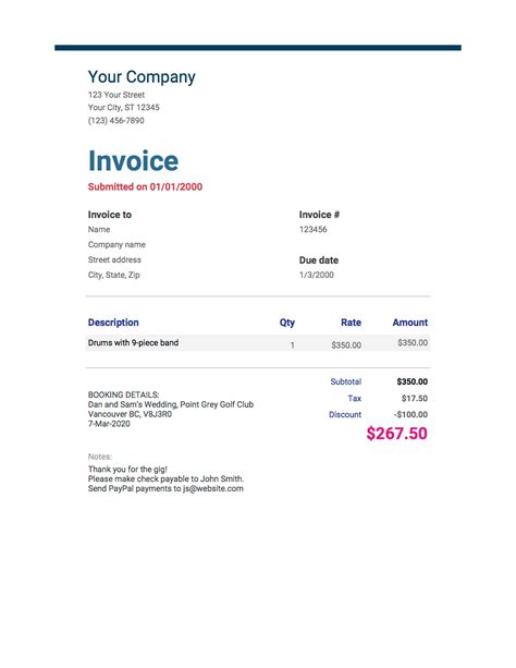 The Best Free Band & Musician Invoice Template (Don't gig without it