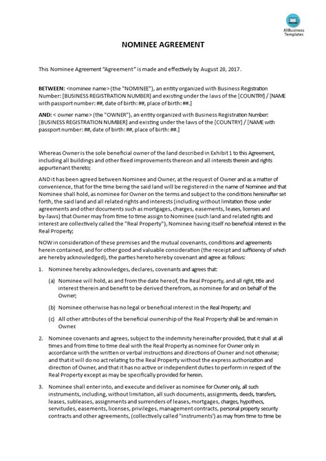 Nomination agreement means the nomination agreement to be entered into concurrently with the closing, by and. Nomination for election to the board of directors shall be made by a nominating committee. Nomination agreement means the nomination agreement to be entered into concurrently with the closing, by and. Web nomination agreement contract templates. Web a nomination agreement is an agreement that sets terms and conditions of one person agreeing to act on behalf of another person. Web 44+ sample nomination form templates. Web nominations agreement means an agreement negotiated between the council and an rp which guarantees the council’s. Web a nominee agreement is an agreement where one person agrees to act on behalf of another person in certain legal. Web description nominee agreement template. Web choose pdf or docx file format for your nominee agreement for shares template. Title to the company's assets will be held in the company's name or in the name of any nominee that the managers.