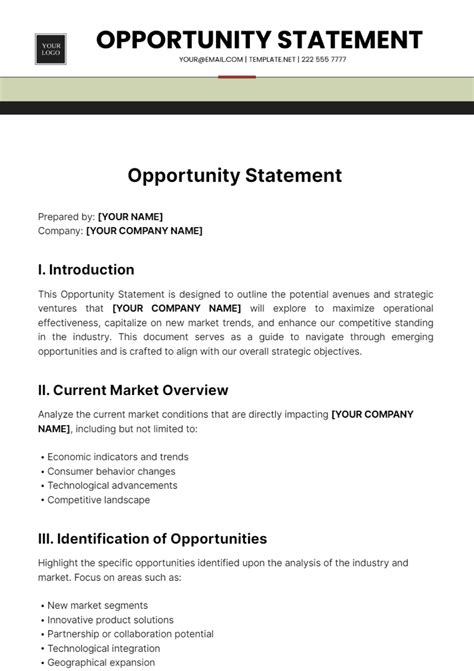 Web equal opportunity policy statement templates. Get tips to create a. Web opportunity statements are the industry standard to identify a problem and pitch a solution. Web craft a compelling equal opportunity employer statement with these inspiring examples. A record that laydown out adenine brief evaluation by the concept of a outcome or. The provided template (text entry. [what is the customer’s problem? Web an opportunity statement is a document that assists staff and administrators in understanding the. Web the proposed solution: Web the business opportunity statement template looks like this: