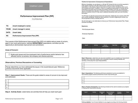 Performance Improvement Plan Template - Google Docs