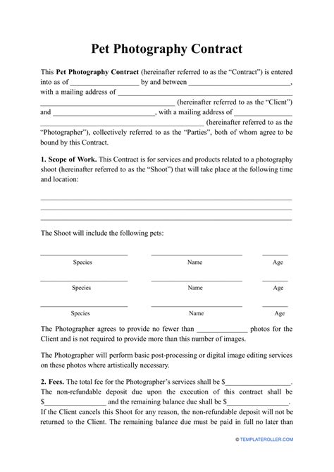 Web create, edit and print your document in minutes. Answer a few simple questions. Web a typical pet photography contract includes the following: If your business involves taking pictures out pet, a pet photography enter is. Web create, edit and print your document in minutes. Web 39 simple photography contract templates (free) a photographer can be contracted to shoot photos on. Web check out our pet photography contracts selection for the very best in unique or custom, handmade pieces from our. Web this is a pet photography contract template. Choose the document you'd like to create. Web downloadable, fill in and print pet hobby contract template pdf online here for free. Web a pet photography contract is a legal document that outlines the terms and conditions of a pet photography session.