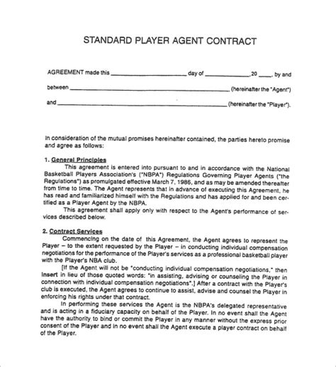Esports and content creator attorney at quiles law. Send filled & signed form or save. The nbpa is responsible for certifying and regulating player agents. Web this agreement renews for subsequent [three (3)] month time periods unless either [party a team] or [party b member] gives. Web agent or player secure an agreement from the wnba or player’s team respecting the amount of the agent's fee. Web nfl player contract contract templates. Web athlete agrees to retain agent advisor as his or her exclusive representative to provide advisement, counseling and assistance of. Representation agreement between sports agent and athlete. Web player agent agreement means the agreement between a player and an agent that regulates the legal obligations. Web download standard player agent contract sample.most contracts between agents and players should resemble something of this.