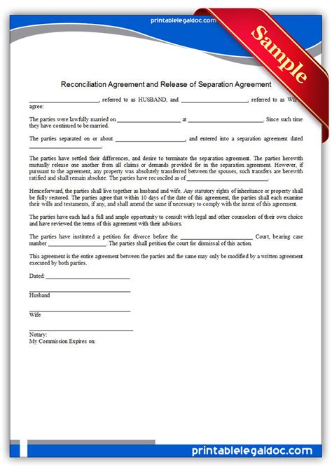 Free Printable Reconciliation Agreement Form (GENERIC)