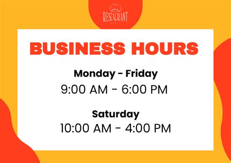 Business Hours Sign Template Inspirational Custom Yellow Business Hour