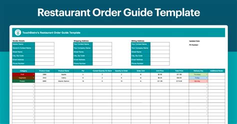 Restaurant Vendor Order Guide Workbook/Spreadsheet