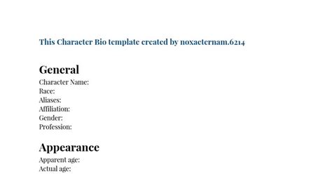 Roleplay Bio Template. Welcome the reader to your bio} iii. This is my super long and detailed oc bio that i use for the.
