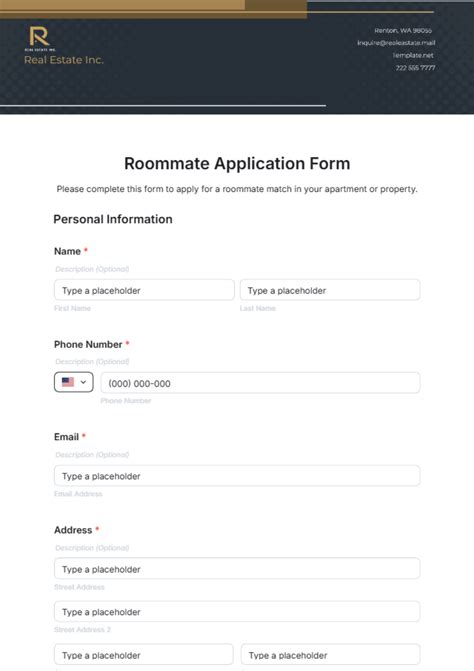 Free Roommate Application Form Template 123 Form Builder