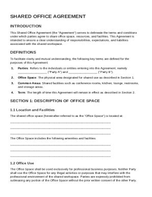 Shared Office Space Lease Agreement Printable Form, Templates and Letter