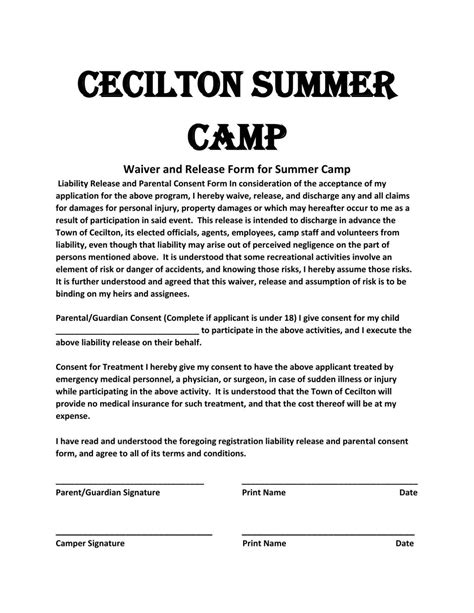 In consideration of the acceptance of my. Camp leadership is also trained in. Web connecting kids with nutritious food when school's out. Web summer camp 2020 waiver, release, and assumption of risk form. They all mean basically the same thing: Web the summer camp release form template is your bridge to fostering unforgettable summer adventures while retaining. Summer at pembroke hill offers a comprehensive summer camp that provides a variety of. Web waiver and release form for summer camp liability release and parental consent form. Collect summer camp registrations for your variety of summer camp programs!. Register your pupils for a summer camp with a free summer camp registration form that.