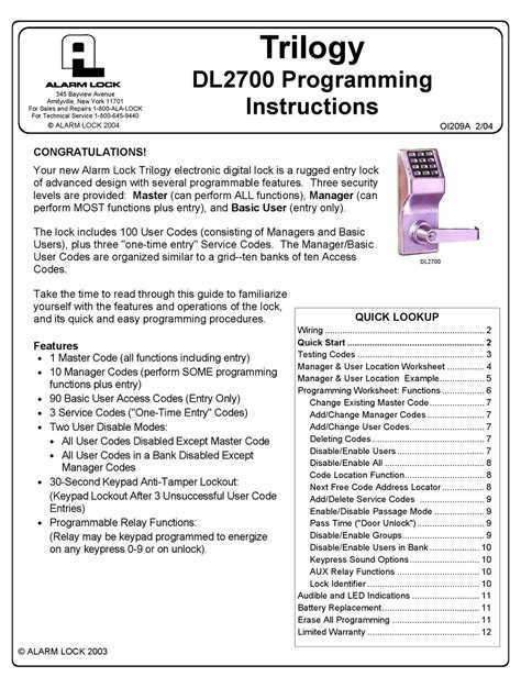 T2 enhanced keypad programming cheat sheet; Web align template on high edge of door bevel. T3 keyapd programming cheat sheet; Web alarm lock dl2700 how to restore factory master code, all locksets. Template, dl1200et, dl1300et, pdl1300et for. Trilogy dl2700 security system pdf. Template for all trilogy cylindrical locks; Web view and download alarm lock trilogy dl2700 installation instructions manual online. Alarm lock dl2700 how to configure the lock to remain unlocked using a remote maintained. T2 enhanced keypad programming cheat sheet; Web t2 dl2700 (original version) keypad programming cheat sheet;