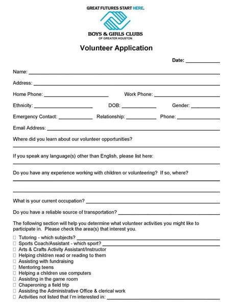 Volunteer Application Template 20+ Forms (Doc & PDF Format)