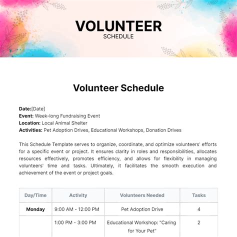 Volunteer Schedule Template 11+ Free Word, Excel, PDF Format Download!