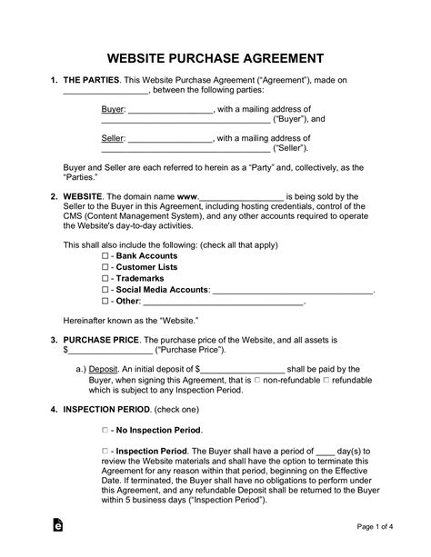 Website Purchase Agreement Template. Web in consideration for the sale of the website as defined in paragraph 1 above, the buyer agrees to pay the seller the amount of. Web here are several free sample domain name purchase agreements for you to use.