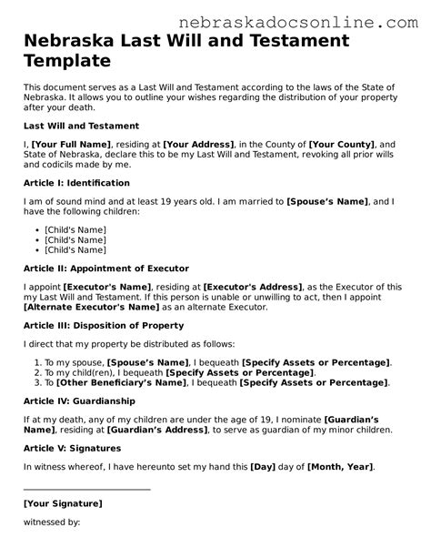 Will Template Nebraska. Decide on the most important content of your will. Web suited for residents of nebraska, this free living will is made for use in sarpy county, douglas county, lancaster county, and in.