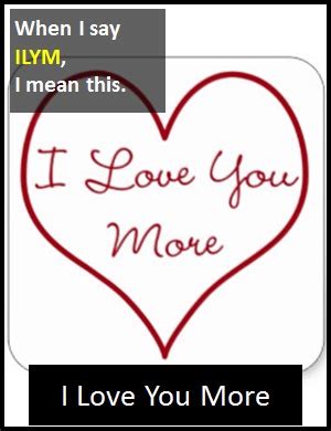 Below are all the the meanings we can find. Web ilym meaning | what does ilym stand for? To those who don’t know, “what it really means is that i’m making a commitment to you. Ilym= i love you more by santiago delgadillo july 23, 2006 flag. Ilym is an acronym, abbreviation or slang word. Below are all the the meanings we can find. Web i love you way more. Ilym = i love you more by santiago delgadillo july 23, 2006 get the ilyt mug. Ilyf means i'll love you forever. ilyf is a line that features in many love songs and poems. Web ily stands for i love you. Your abbreviation search returned 3 meanings link/page citation category filters all definitions (3) information.
