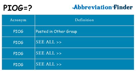 What Does Piog Mean. The definition of piog is given above so check it out related information. 5 popular meanings of piog abbreviation: