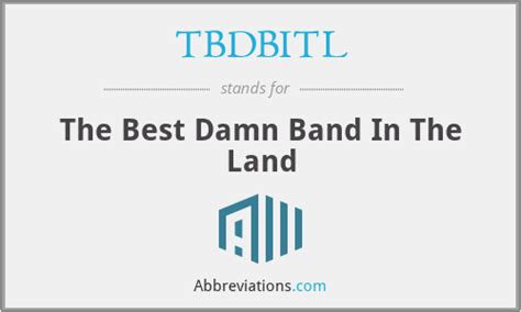 What Does Tbdbitl Stand For. The best damm band in the land. Showing only slang/internet slang definitions ( show all 2 definitions) new search.