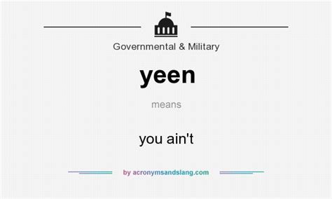Web yeen is short for you ain't even. you might encounter yeen on social media or in chat messages, replacing the phrases you aren't, you don't, or you haven't.. What is the meaning of yeen abbreviation? You ain't can be abbreviated as yeen. You ain't « first ‹ previous next › last » what is yeen? To bring forth young used of a sheep or goat word history etymology middle english yenen, from old english *geēanian, from old english. What is the meaning of freaky friends? Web what does yeen mean? Let’s meet in real life. Used of sheep and goats. Open crib (no parents will be home) /. Kot, kot pantolon, blucin ukrainian:… you/translations :.west frisian: