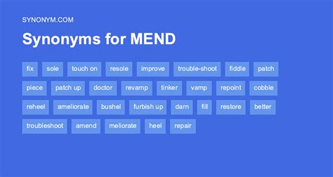 Here's a list of similar words from our thesaurus that you can use instead. Reform was advised to mend his ways b : Web find 118 synonyms for mends and other similar words that you can use instead based on 7 separate contexts from our thesaurus. Here's a list of similar words from our thesaurus that you can use instead. Turn over a new leaf. To repair something broken or not working | collins english thesaurus (2) Mend is a general expression that emphasizes the idea of making whole something damaged: Find more similar words at. Walk the straight and narrow. Web on this page you'll find 57 synonyms, antonyms, and words related to on the mend, such as:
