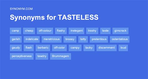 Another Word For Tasteless. Web find 102 ways to say tasteless, along with antonyms, related words, and example sentences at thesaurus.com, the world's most trusted free thesaurus. Web explore 'tasteless' in the dictionary tasteless 1 (adjective) in the sense of gaudy definition lacking social or aesthetic taste spectacularly tasteless objets d'art synonyms gaudy.