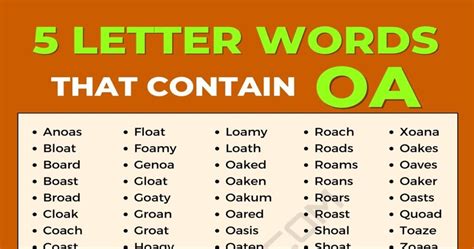 Five Letter Oa Words. Web words starting with _o__a. Get the ultimate word list, complete with points!
