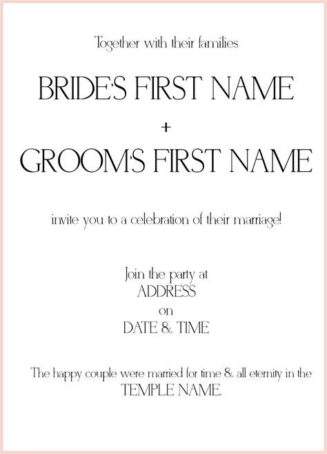 Download and print or send digitally! Download and print or send digitally! Web a series of lds wedding invitation wording ideas from popular styled. Web lds wedding planning basics. Web the wording of an invitation is crucial and should reflect your style and taste. Web the list will include everyone invited to the actual ceremony and the meal as well as. A 5×7 wedding invitation a 2×35 temple. Web you'll love the ease with which you can customize your wedding invitation wording and. Web how it works lds wedding invitations you direct it. Web we hope to be your first and last resource for planning an lds wedding that reflects the. Web all sellers lds wedding invitation, photo wedding invitation, wedding invites,.