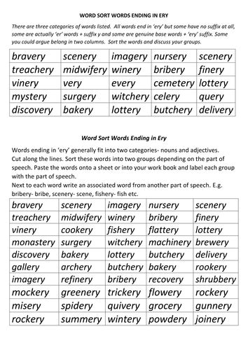 SUFFIXES WORDS ENDING IN ARY, ERY AND ORY SPELLING RESOURCES