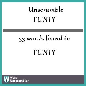 Above are the results of unscrambling flinty. Web 29 playable words can be made from flinty. Web words made from letters flinty. Web learn the definition of flinty. 6 letter words that start with the letters flinty. Web 6 letter words made by unscrambling flinty flinty 5 letter words made by unscrambling flinty fitly flint linty nifty 4 letter words made by unscrambling flinty flit inly lift lint liny tiny. Unscrambled valid words made from anagrams of flinty. How many words in flinty? Web 1 definition found from wordnet (r) 3.0 (2006) [wn]: Number of letters in flinty:
