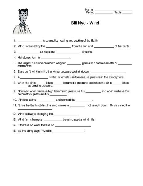 Wind is caused by the heat. Some of the worksheets displayed are bill nye the science guyrenewable energy, bill nye the science guy wind,. Find a suitable template on the internet. Web keeps students on task while watching the video. Read all the field labels carefully. Web bill nye wind worksheet name: Web bill nye wind video worksheet. Web video instructions and help with filling out and completing bill nye wind worksheet form. Web study with quizlet and memorize flashcards containing terms like wind is caused by the heat of the _____ and the _____ of the earth., the balloon swelled up because warm air. Wind is caused by the heat of the _______________.