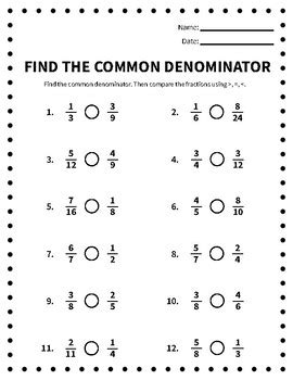 Common Denominator Worksheet. A fraction represents a part of a whole or any. We can do those two things in one step like this: