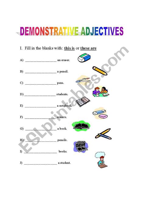 Demonstrative Adjectives Worksheets. Choose this is or these are. All worksheets are pdf files;