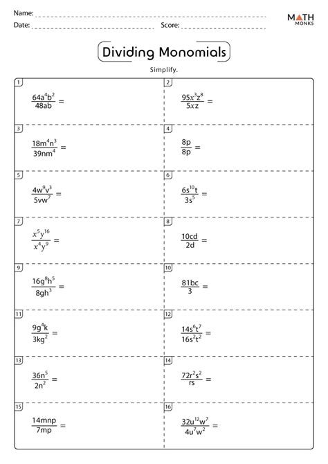 30 Multiplying and Dividing Monomials Worksheet Education Template