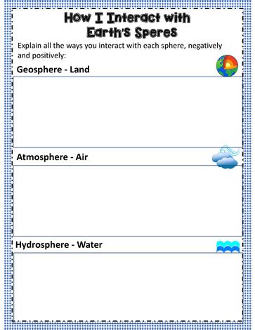 Biosphere, atmosphere, hydrosphere and geosphere. Kirti test 1 match the following. Layers of the earth other contents: Web earth ’s spheres interactions mazebreak away from your standard looking multiple choice worksheet and engage your earth science students with this maze challenge. Web earth spheres we identify the differet spheres. Web this activity can be printed and used for students to demonstrate their knowledge of how earth's systems (geosphere, biosphere, atmosphere, and hydrosphere) interact. Web after making observations of their natural surroundings, students uncover the intricate relationships between the atmosphere, biosphere, geosphere and hydrosphere. Free interactive exercises to practice online or download as pdf to print. (104) link to this worksheet: Web earth's spheres interactions worksheet. Web earth's spheres interactions worksheets and online activities.