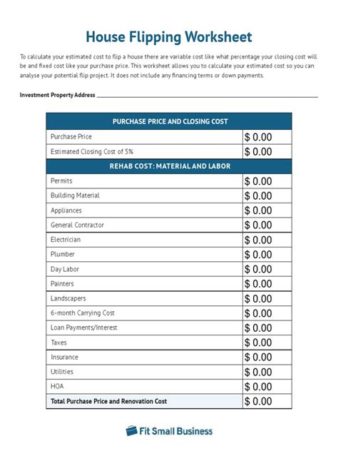 House Flipping Worksheet. Web i will share estimating tips and tricks to help you learn how to estimate rehab costs more accurately for your house flipping projects. Web the house flipping spreadsheet provides powerful deal analysis tools to help you estimate your repair costs and analyze the maximum purchase price you should offer for a house flip or rehab project.