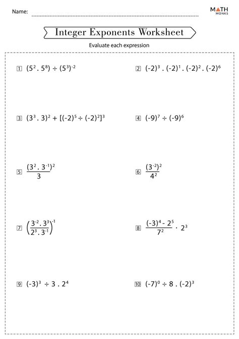 Web integer worksheets contain a huge collection of practice pages based on the concepts of addition, subtraction, multiplication, and division. Web properties of integer exponents worksheets when we are working with exponents, i find that students have a tendency to convert those values to whole numbers before they go. Web working with radicals and integer exponents worksheets resource examples definition: Worksheets are exponent rules practice, exponents work, math 105 integer exponents ksu. Videos, examples, solutions, and lessons to help grade 8 students know and apply the properties of integer. Web exponent properties (integer exponents) quiz 2: Integer exponent worksheets are usually. 5 questions practice what you’ve learned, and level up on the above skills. Exclusive pages to compare and order. Web showing 8 worksheets for applying the properties of integer exponents.