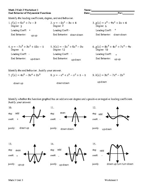 Math 3 Unit 3 Worksheet 1 Answer Key. ______ identify the leading coefficient, degree, and end behavior. Math 3 unit 3 worksheet 1 end behavior of.