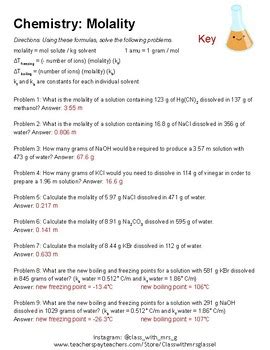 Molarity Worksheet Answer Key Chemistry Worksheet List