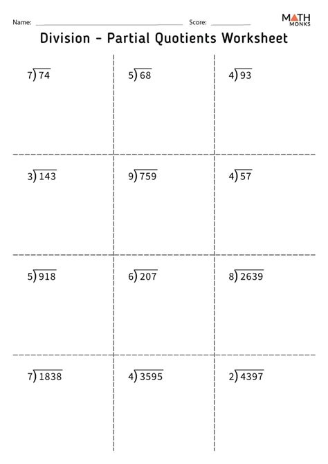 Partial Quotient Division Worksheets. A partial quotient refers to a method used in solving large division mathematical problems. Web partial quotient method of division: