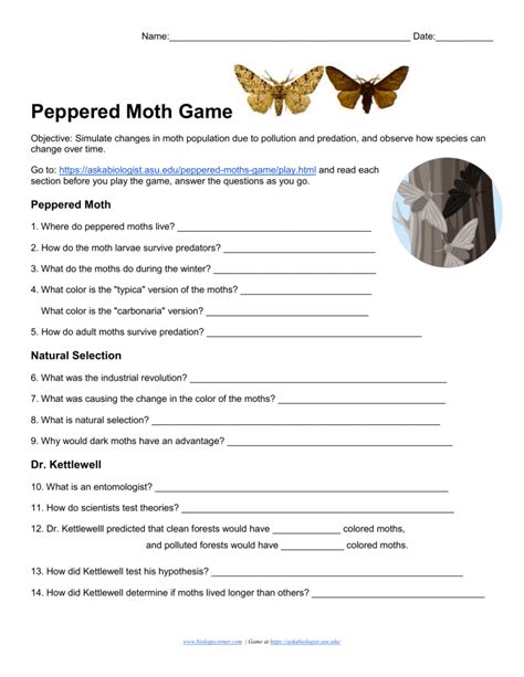 Guide the bird with the mouse to the moths. How able evolution can modeled? Web peppered moths, like other moths, fly at night and rest during the day to avoid predators who hunt during the day. Guide the bird with the mouse to the moths. They will then play the lucky. This new version, “peppered moth game” was. A simple activity which can be used for either ks3 or gcse to help students understand how adaptations within the peppered moth species provides evidence towards natural selection. Web this worksheet was develop as a replacement to an older (similar) worksheet that used a flash animation. Web of game has the user playing the role of the bird as it looks in moths on trees. Web sheet of white paper and newspaper forceps clock with second hand 30 newspaper circles 30 white circles (made with hole punch) purpose in this lab, you will simulate how. Resource includes questions and introduction to the activity.