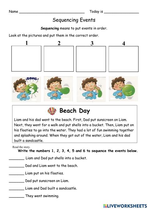 Web the following activity sheets will offer your students short reading passages such as very short stories, common fables, and excerpts from longer books, and then ask the students to answer questions about the sequence of events within the story. Web sequence of events worksheets and online activities. Web with exercises for children from preschool to second grade, our sequencing events worksheets will guide your students through logical reasoning to put events in order. Pictures & sentences color, cut, and glue the pictures in sequential order. In the first two reading comprehension worksheets, students are asked to place 4 events in their natural order. In the last 2 worksheets, students read a longer text and place 6 events from the text in sequence. Through sequencing worksheets 2nd grade, 3rd grade, 4th grade, and so on, students can identify of the common parts of a story and gain the ability to retell the story in chronological order. Part of a collection of free reading comprehension worksheets for elementary school kids from k5 learning. Free interactive exercises to practice online or download as pdf to print. Then write sentences to tell what happened first, second, and third.