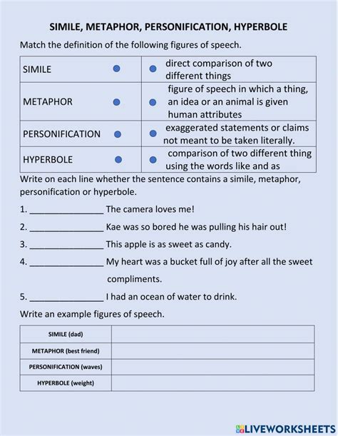 Simile, Metaphor, Hyperbole, or Personification Worksheet