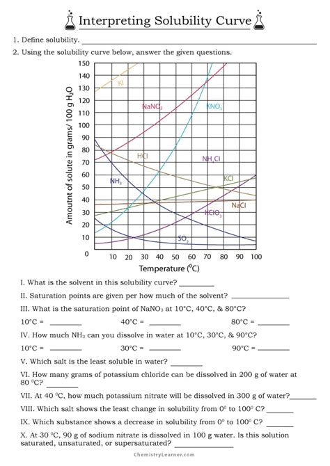 Solubility Curve Practice Problems Worksheet 1 Answer Key Solubility