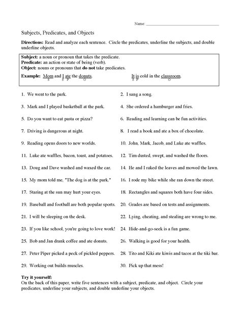 It is either the whom or what of the sentence. Ad bring learning to life with worksheets, games, lesson plans, and more from education.com. Identify the complete subject and the complete predicate. In these worksheets, students identify subjects and predicates. Web subject and predicate worksheets. Nurture your child's curiosity in math, english, science, and social studies. Web english grammar grammar exercises subject and predicate exercises subject and predicate exercises sentences are made of subjects and predicates. Web combining sentences subject and predicate nouns. Web our printable subject and predicate worksheets prepared for students of grade 3, grade 4, and grade 5, are brimming with learning backed by application, and thinking paired with. It is either the whom or what of the sentence. Web the subject is what the sentence is about.
