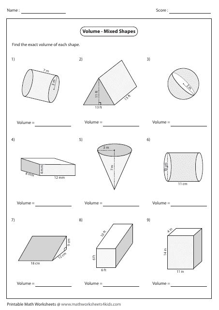 volume mixed shapes worksheet with answers download printable pdf
