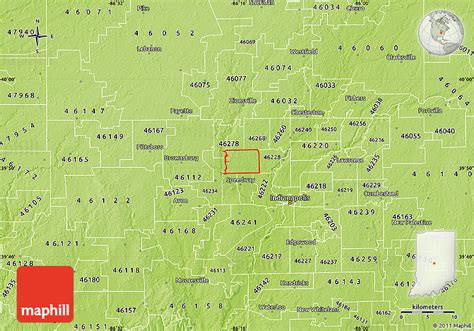 Physical Map of ZIP Code 46254