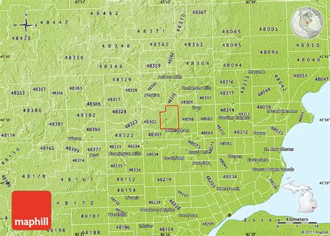 Physical Map of ZIP Code 48304