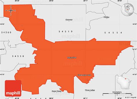 Political Simple Map of ZIP Code 54521, single color outside, borders
