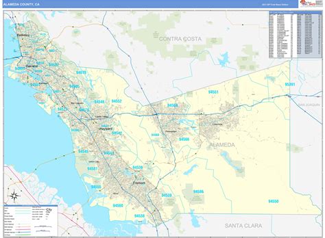 Alameda County, CA Zip Code Wall Map Basic Style by MarketMAPS MapSales