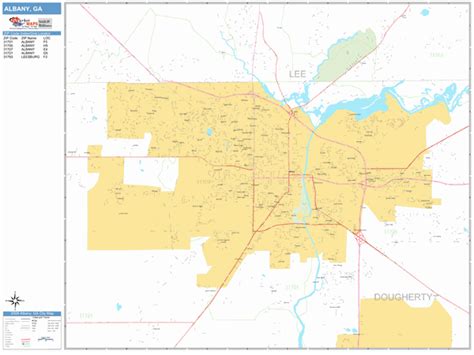 Albany New York Zip Code Wall Map (Red Line Style) by MarketMAPS MapSales
